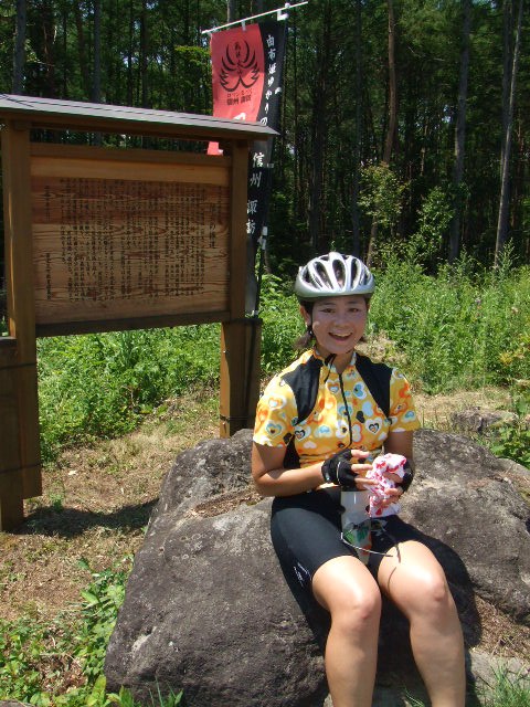 ●最初の休憩は5.4km地点でとった。出発から30〜40分経過している。小さく峠になっており、古道「信玄の棒道」の解説板がたっている(写真有り)。ここからは緩やかなアップダウンで林の中を走る、最高のサイクリング。