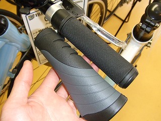 体重が掌にかかりやすい初心者でも痛みを感じず快適に走れるハンドルバーグリップです。中級者でも意外なほど快適なことを実感できるだろうとも思います。グレーの部分はいっそう柔らかい素材であたりがやさしくなっています。