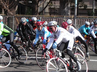/1くらいまで見事なまでの「死んだふり」作戦をみせ、そのあと位置取りも含めよい動きを見せていたのですが、なんと最後から2番目のダッシュポイント、最終周回の銀杏並木の折り返しコーナーでビンディングペダルが外れ、ダッシュのタイミングをつかめずに集団から遅れてそのままゴールとなってしまいました。本人も口がきけないほど悔しかったと思いますが、見ているこちらも「惜しかった」!。