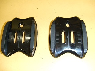 昨年10月の展示会で見た、地味ながらお役立ちアイテムです。これは、ロードレース用シューズでもってSPD用の取り付け穴が空いているものに、MTB用のSPDクリートを取り付けたときに歩行が(比較的)危険でないように、またクリートの損傷を軽減するアイテムです。
