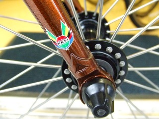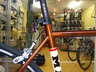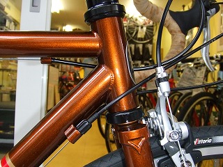 ●ブラウンメタリックにクリーム色の塗り分け(1960年代以前に流行したこのような塗り分けを「胴抜き」と呼びます)で、スピードにこだわらず走ることの楽しさを主張しています。バーテープもコルク調で、ビンテージ感あふれるデザインです。