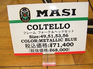 すでにハイロードでも注目していろいろと在庫しているMASI(マジー)のバイクとフレームセットの展示もありました。少しですが写真でご覧ください。