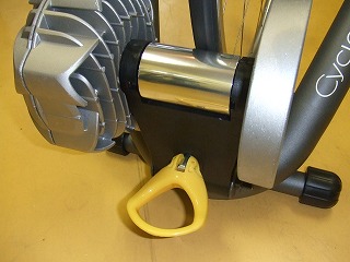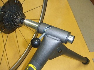 ○また、自転車の設置がきわめて簡単なのも特徴です。最初にマイバイクの設定を行ってしまえば2回目以降はレバーを倒すだけでバイクをセット、別の黄色いレバーを倒してプレッシャー設定完了、という簡便さです。