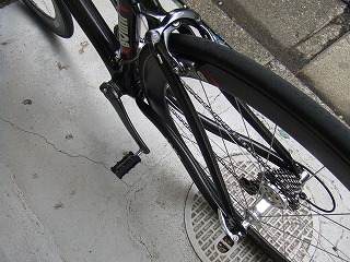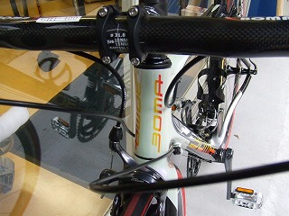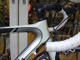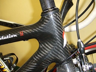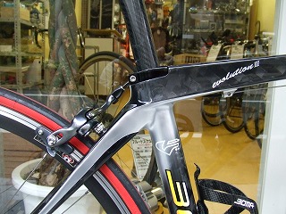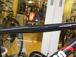 この春発売の最新モデルです。スペインの●●によく似たグラマラスなフレームデザインと、シャープできれいなグラフィックが目をひきます。表面の仕上げカーボンの美しさもさすが素材商社ならでは、という印象です。