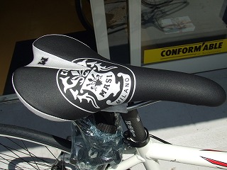(清潔感あるフレームデザイン。サドルはMASIのエンブレム入り)