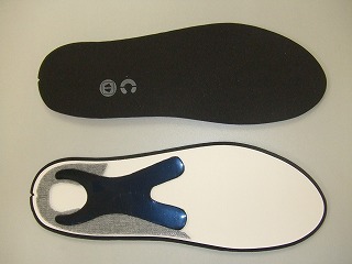 (よく見ると、足裏後半部分が厚くなっているのがわかる(写真右))