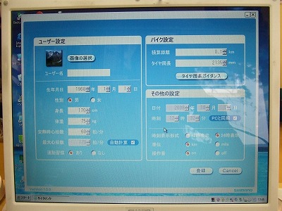 初回導入時に使い手の体重や年齢、自転車のタイヤ周長など基本情報をパソコンを使って入力設定します。これも従来のサイクルメーターに比べるとはるかにわかりやすい機能といえます。