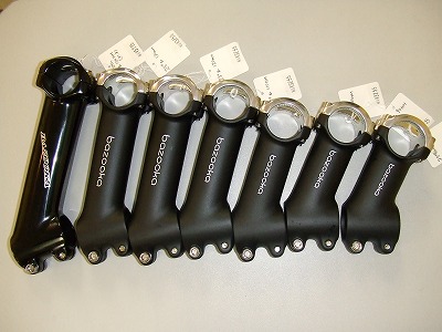 など、(長さ及び角度の両面で)多様なサイズのステムを極力在庫しています。とくにステムの長さについては50mmからロード用のもので140mmまで、ロード用以外のものだと150mmまで随時在庫しています。