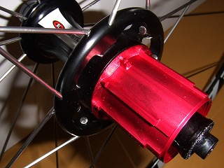 (デュラエース専用の軽量フリーホイール。ハンドメイドの証のステッカーが。)