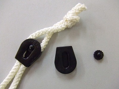 よく見かけるボタン式のコードロックはバネの力でコードを押さえつけて留めますので大きな力がかかるとコードがずれてしまいます。しかしこのFL75はコードが引かれるほどローラーが食い込んでさらにしっかり締まります。ヨットで使われるカム式のシートストッパーと同様の理屈です。