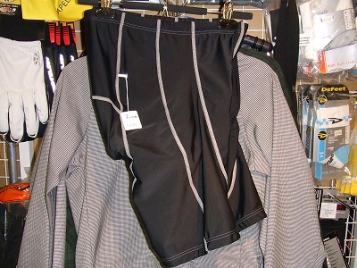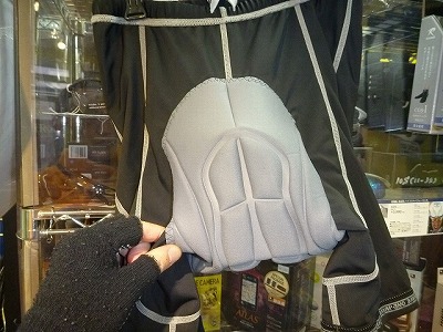 カペルミュールのショート丈・肩ひも無しパンツ(¥7875税込)(別ウィンドウにて)をベースに、極厚でソフトな乗り心地の「プロライドパッド」を組み合わせた別注品です。他社の既製品にはまず例を見ない、長距離長時間の本格走行に適していながら厚みに大変余裕のあるパッドです。