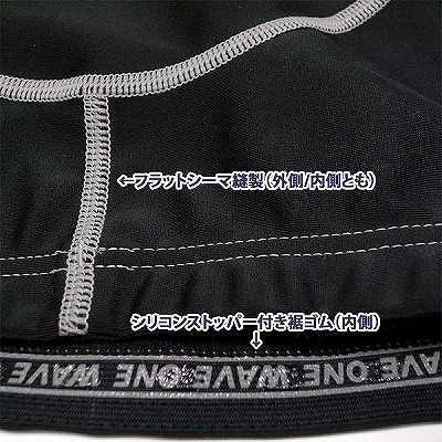(メイドインジャパンの丁寧なつくりのパンツです。シリコンストッパーは破線になっているのでソフトで皮膚への刺激が少ないです)