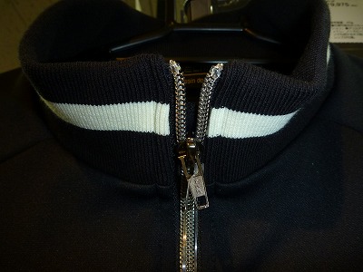 (襟のジャージとYKKメタル調ジッパー)