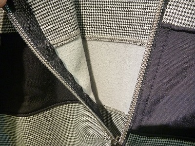 (裏地が省かれた軽快な仕様。ぜひ汗処理に優れたインナーウェアと併用してください。切り替えの生地は裏起毛で暖かい)