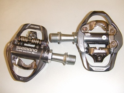 もっともMTB用ペダルは上下両面ともステップインできる構造になっているのでペダル装着時に正しい面をいちいち探すという面倒がなく、重量をさほど気にされない向きにはこのような両面ステップインタイプが使いやすいと自分は思います・・・。