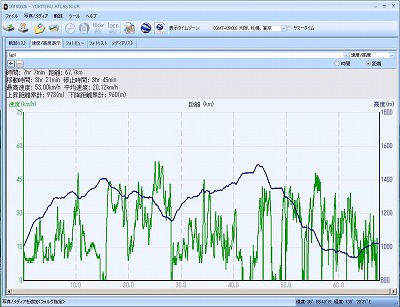 (八ヶ岳イベントでの高度と速度のグラフ)
