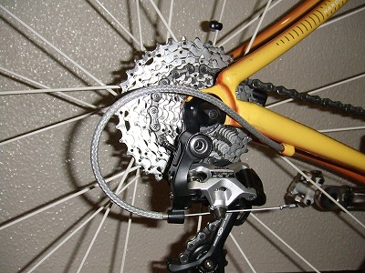 いままでもリヤ9段変速であればこういった改造が可能だったのですが、この夏シマノがMTB用のリヤ10段変速を発表したことから、シマノのロードパーツの主流であるリヤ10段変速の場合にも「激軽」仕様が容易に制作できるようになりました。