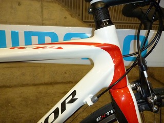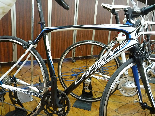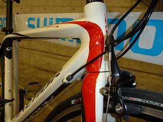 カーボンの軽量しなやかバイクの代表作です。こちらも乗り出したとたんに軽やかに加速する感じがえられました。ベーシックで重量のあるホイールが装備されていたことを加味すると大変軽快な加速を楽しめるバイクだと思います。