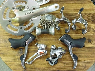 クランクセット・ボトムブラケット・前後変速機・前後ブレーキ・左右STIレバー・カセットスプロケットのセット販売です。