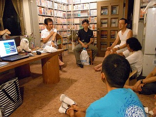 21時頃 ブリヂストンサイクル(BS)開発部門の中西氏が奥様と共に飛び入りしてくださり(氏はちょうど雑誌取材のためペンションに投宿されていた)、非常に興味深いお話を1時間以上もお聞かせくださいました。更に途中から別の宿にいらした藤田晃三選手も参加してくださり、更に興味ぶかいお話をおうかがいできました。