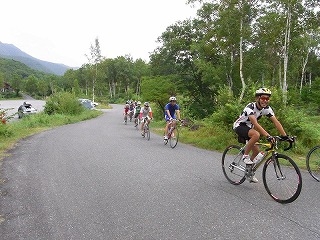 結局一ノ瀬園地(牧場)のすぐさき、9時頃に通行止めに到達してしまい、やむなくゆっくりソフトクリームを楽しむことになりました。そのあと、もう少し走りたいという意見が多く、鈴蘭へ戻って昨日走ったヒルクライムコースを再度(一部分だけ)走行しました。