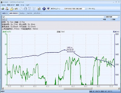 (八ヶ岳イベントでの高度と速度のグラフ)