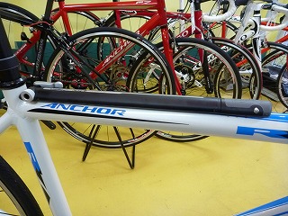 最近スポーツバイクの盗難が急増していると聞きます。防犯の最大重要ポイントは置き場所の選定なのですが、もちろんきちんとした鍵を使うことも欠かせません。この鍵は頑強なスチールバーでできており、強固な防犯力を発揮します。表面はPVCコートされており自転車に傷を付けにくいようになっています。シリンダーは不正な開錠がしにくい特殊形状です。