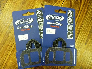 裏側が接着シートになったサンドペーパーです。これをカーボンソールのロードシューズの底に貼り付けると、取り付けたクリートが動いてしまうのを防いでくれます。クリート固定ネジはデリケートなので、過大トルクで靴を傷めてしまう前に、こういった小物で正しい取り付けを励行しましょう。