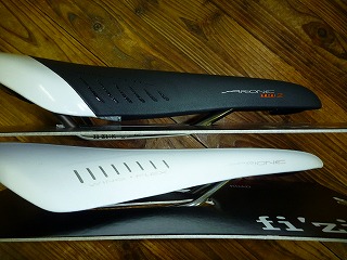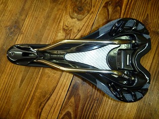 レースサドルの定番としてここ10年ほど圧倒的な支持を集めているサドル「アリオネ」の姉妹バージョンです。通常のアリオネの前半分のパッドが増量してあり、またこの部分のヨコ断面で見ると中央部が盛り上がらないフラットな形状になっているので、サドルの前のほうに強く荷重がかかった状態を続けるタイムトライアルやトライアスロンでの乗り方に向いています。