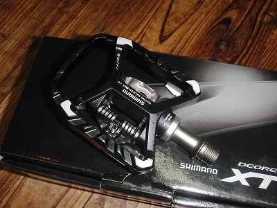 時にはスニーカーでも走りたい、登山靴のようなごつい靴で乗ることもある、そういう人向けの片側ビンディングペダルに、シマノがようやく高級グレードの製品を作ってくれました。XTグレードですからロードでいうとアルテグラクラスとなります。従来品よりもだいぶ軽くなりました。
