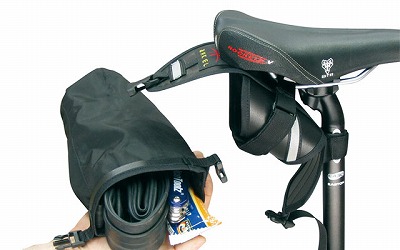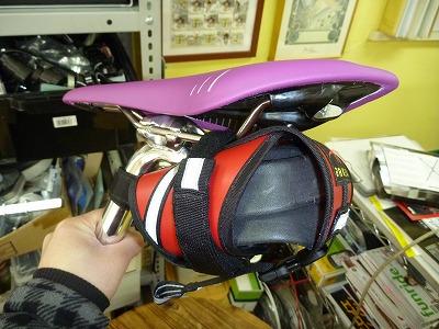 - ストラップ取付式であること。当店お勧めのきちんとしたバイクフィッティングをした結果、サドルやシートポストのセッティングがやや特殊になっていてもストラップ式なら確実に固定できます。また(台座式の場合時に起こる)台座からの脱落=バッグ紛失といったトラブルが起こりません。