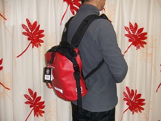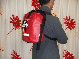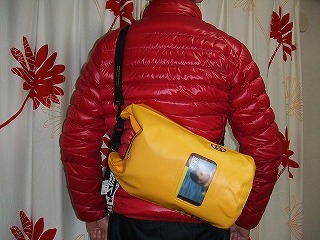 などの特徴があります。ハイロード青山(身長168センチ体重64キロ)が10Lのドライチューブに試作品を付けてみました。バッグがぴったり腰に密着してとても動きやすいうえ、スタイルも個性的になりました(下写真)。