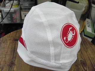 ヘルメットの中にかぶる「ヘルメットライナー」です。ヘルメットのフィット感を向上させ、また頭皮にかいた汗を素早く吸収して生地の繊維の間で蒸発させるので汗が顔にたれにくくなります。