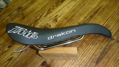 ※指で示した部分は恥骨結合部付近の骨がサドルにあたるところだが、ドラコンではこの部分のパッドがダイナミックに比べて相当厚みを増してありあたりがやわらかくなっている。もちろんサドル後部(坐骨結節付近が載るところ)もパッドが厚くしてあり振動吸収・体圧分散に秀でている。