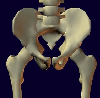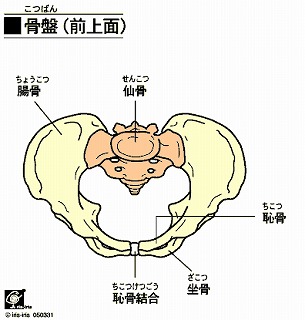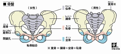 (骨盤形状(男性。底部が狭い)。左:正面、右:背面(c)フリーメディカルイラスト図鑑)