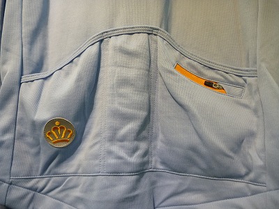 (左:襟の裏地が小粋!右:胸のエンブレム)