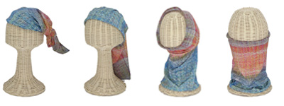 襟元の防寒に、女性の髪のホコリよけに、汗止めに、防寒覆面にと縦横無尽に使えるアクセサリーです。とりわけ襟元の防寒は身体全体の寒さの感覚を大きく左右しますので重要です。