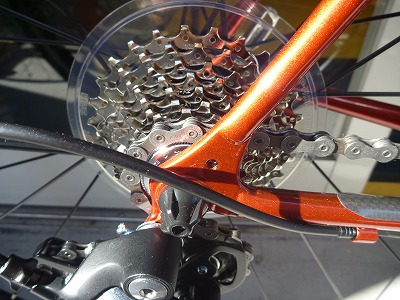 (日差しを浴びて輝くペイント!リヤキャリアを付けるだぼ穴がさりげなくついている)