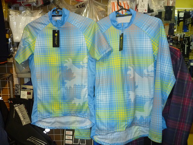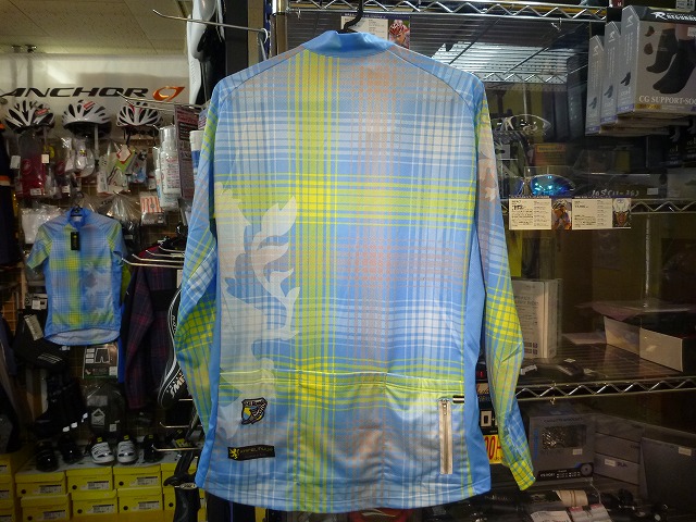 ジャージのデザインは2009年の発足以来当店で注目してきたブランド「カペルミュール」(当店特設コーナー。別ウィンドウにて)の人気モデル、「ライオングリーン」半袖&長袖ジャージ(別ウィンドウにて)を原型とし、地柄のカラーが当店のシンボルカラーであるスカイブルーとイエローを使ったオリジナルになっています。