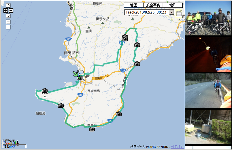 今回のルートはとくに前半が道に迷いやすい設定でしたが、ユピテル・アトラスGPSマップ「ASG−CMシリーズ」などのおかげで大過なくルートをたどることができました。それだけでなく、アトラスでは走行後は撮ってきた写真をちりばめたすばらしい「写真入りルートマップ」が制作できるのです。下の画像をクリックしてぜひ見てみてください。