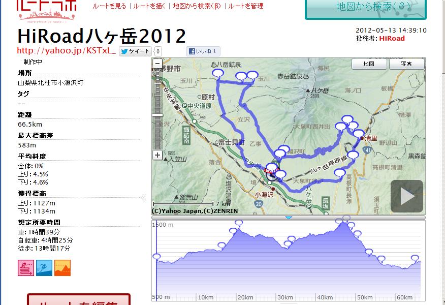 「2012ハイロード八ヶ岳サイクリング報告」 |