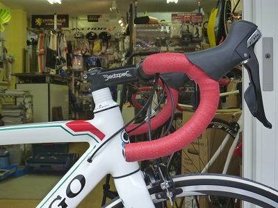 このように画期的ともいえる進歩を遂げた新型105コンポを見てしまうと、旧型のついているバイクは魅力が褪せてしまいます。そこで当店で工夫して、コンポを最新パーツに載せ替えたのがこの一台です。今回のオリジナルアッセンブルでは、