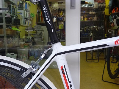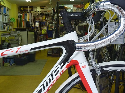 はるかに格上のパーツを搭載してリアルレースに使うこともできる本格派フレームセットを使いながら、パーツセレクトで背伸びを避けたことで値頃感のあるバイクになりました。“予算が限られているが、しっかりしたカーボンフレームのバイクが欲しい”、“パーツは将来載せ替えも容易なのでさしあたりこだわりがない”というようなひとにまさにうってつけのお値打ちパッケージです。ぜひお早めにご相談ください。