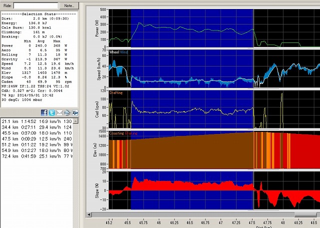 (自分青山の天女山ヒルクライム記録。パワーメーターiBike(別ウィンドウにて)で記録した)
