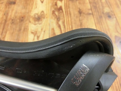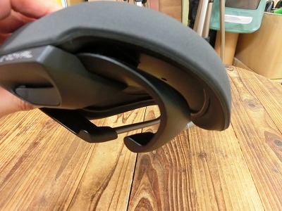 (サドルと金属レールが弧でつながる「クーヴァ」サスペンション機構はフィジークブランドでもおなじみ。樹脂製だが意外と剛性は高い)