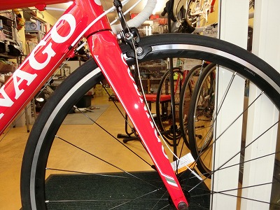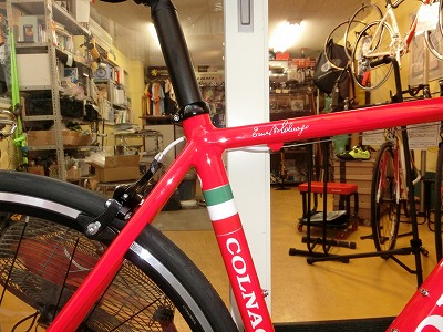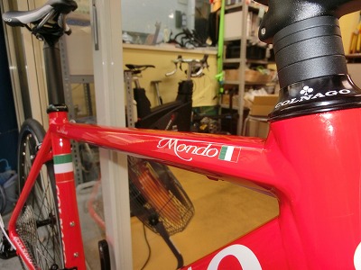 - 超高光沢仕上げの、シンプルでいてイタリアンバイクらしいカラーリング。休日サイクリングから競技志向のライダーまでイタリアンバイクらしい雰囲気を満喫していただけます。整備中に磨いていて思ったのですが、おそらくこの塗装はペイント後にコンパウンドを使った磨き工程を経ています。それほどのすさまじい光沢です。飛び切りの愛車にふさわしい、プレミアムな仕上がりです。(→その後輸入元に確認したところやはり磨き工程があるとのことでした。ほんとうに価格を超えた素晴らしい仕上げです!)