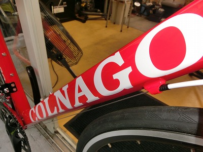 (極太チューブからはみ出さんばかりのコルナゴロゴ)