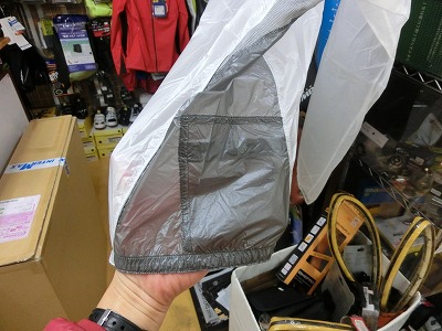 朝出発時にちょっと羽織って走りだし、温まってきたら脱いで仕舞い込むというロードバイクでのよくあるウィンドブレーカーの使い方だと、超軽量で簡単に小さくたためるアイテムが使いやすいのです。お手頃価格と相まってたいへんお勧めです。