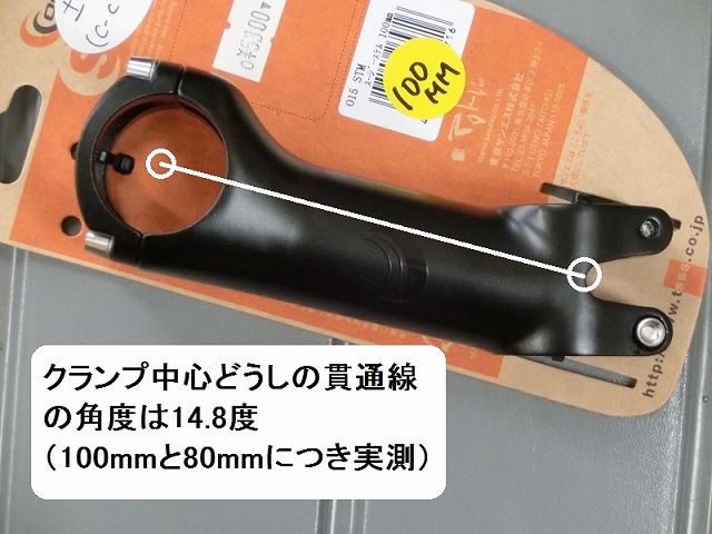 ただハンドルを下げればいいのなら、ステムの突き出しが前下がりになる急角度なステムを使えばいいのです。しかし前下がりのステムは最近の前上がりのフレームデザイン(スローピングトップチューブ)との相性が悪く、ちょっとカッコ悪く感じることがありました。突き出しが地面とほぼ水平になる73度のステムにも同様の印象があります。