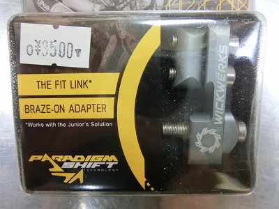 上側の二つのボルトでこの「フィットリンク」をフレームに固定します。ここでの上下位置調整はほとんどできないでしょう。そのかわりフロントメカの外向き・内向きの調整はここでばっちりできる形状になっています。